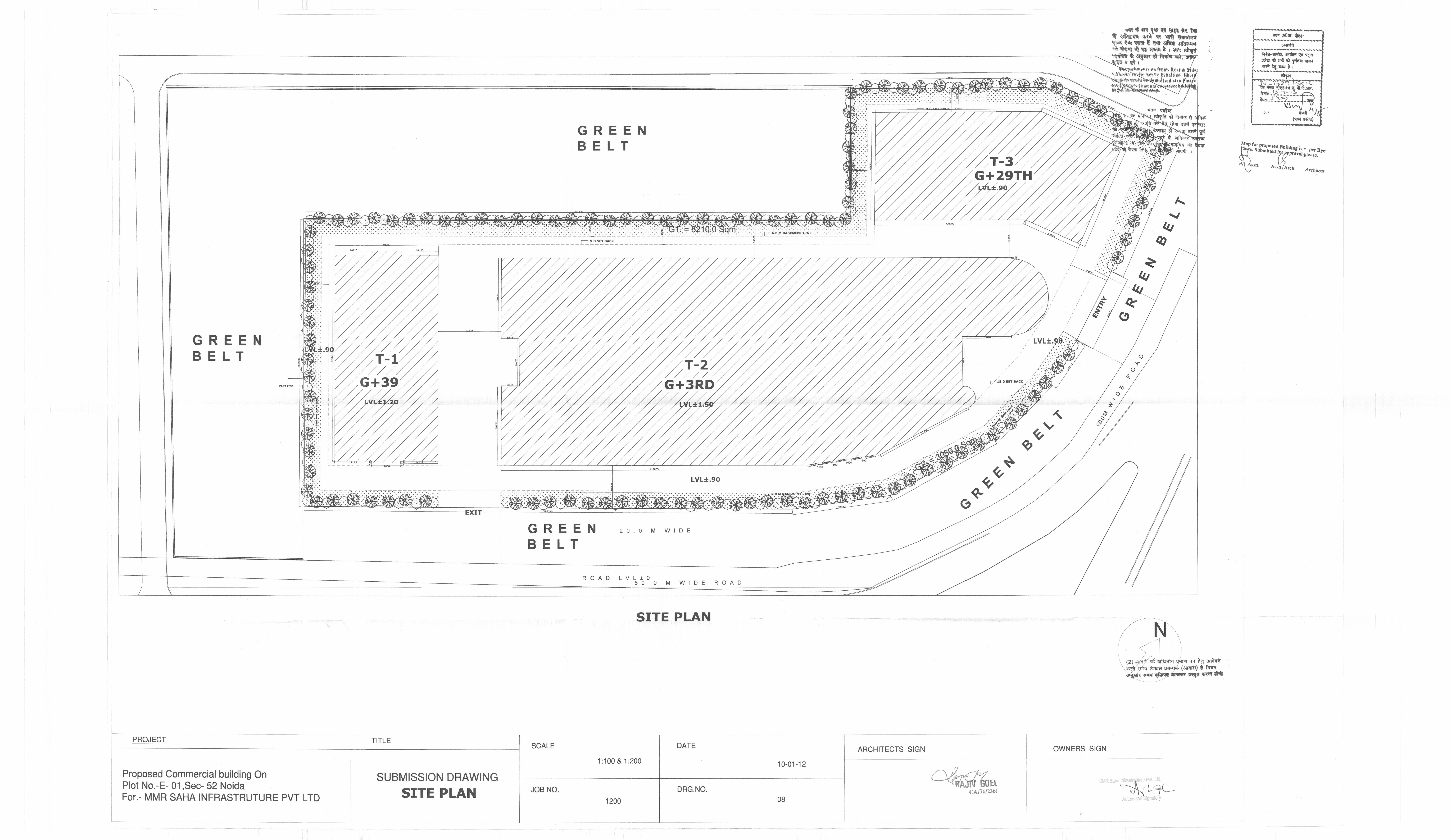 1. All level is to be marked with fire exit direction signage and building evacuation plan 2. Full building is loaded with fire annunciation system (MCP, and fire man telephone points) 3. According to fire norms fire refuse areas is also proposed 4. Fresh air and smoke evacuation is also proposed on each level.