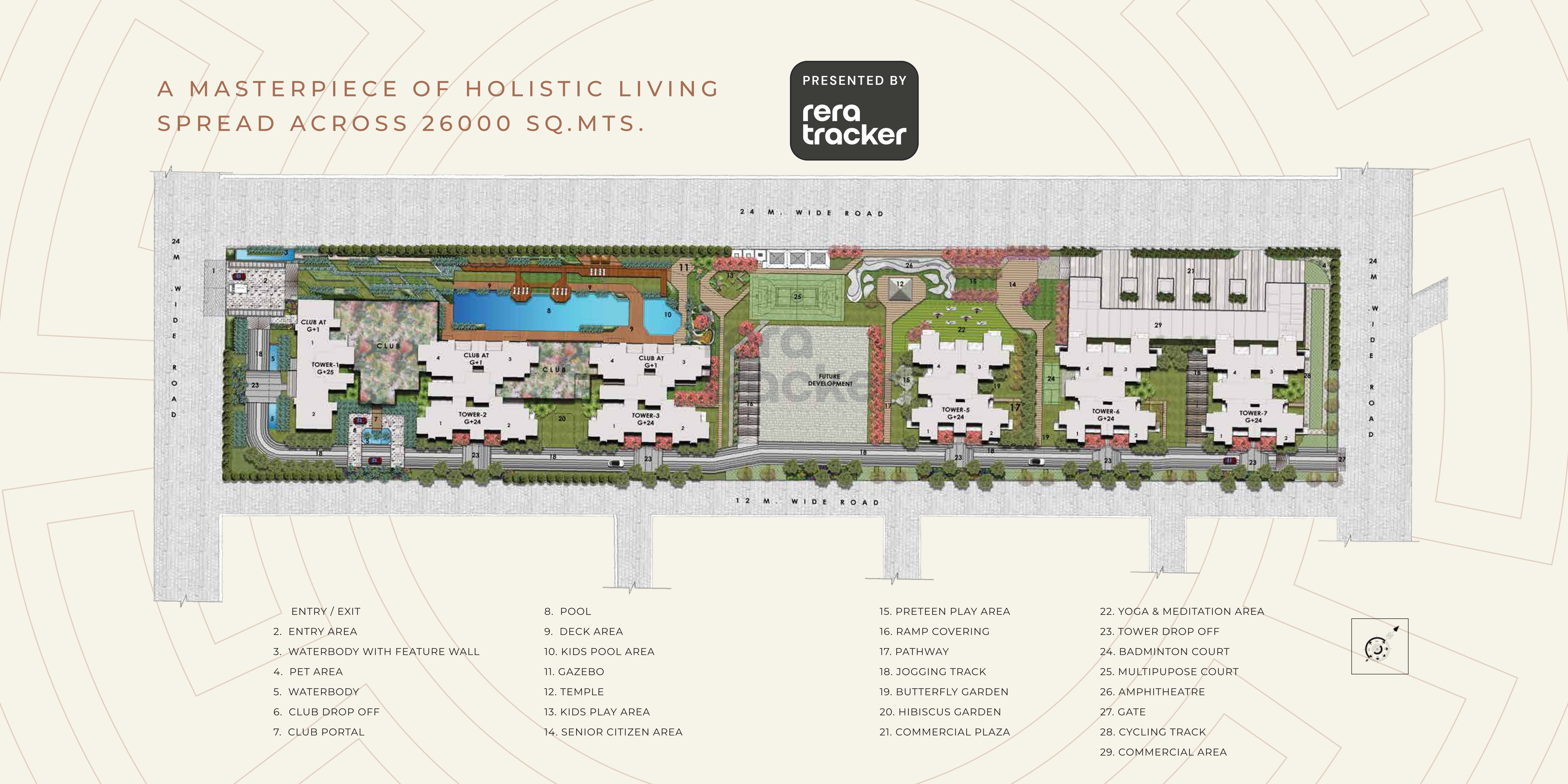 Social gathering places are being provided in the plaza. These places will be spread over the whole complex and the residents will be able to enjoy the same. Swimming pool, gym, indoor play area, playing courts, all these facilities will be provided in the complex.