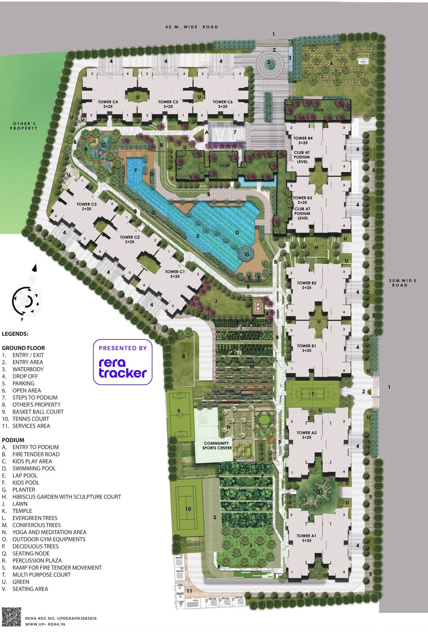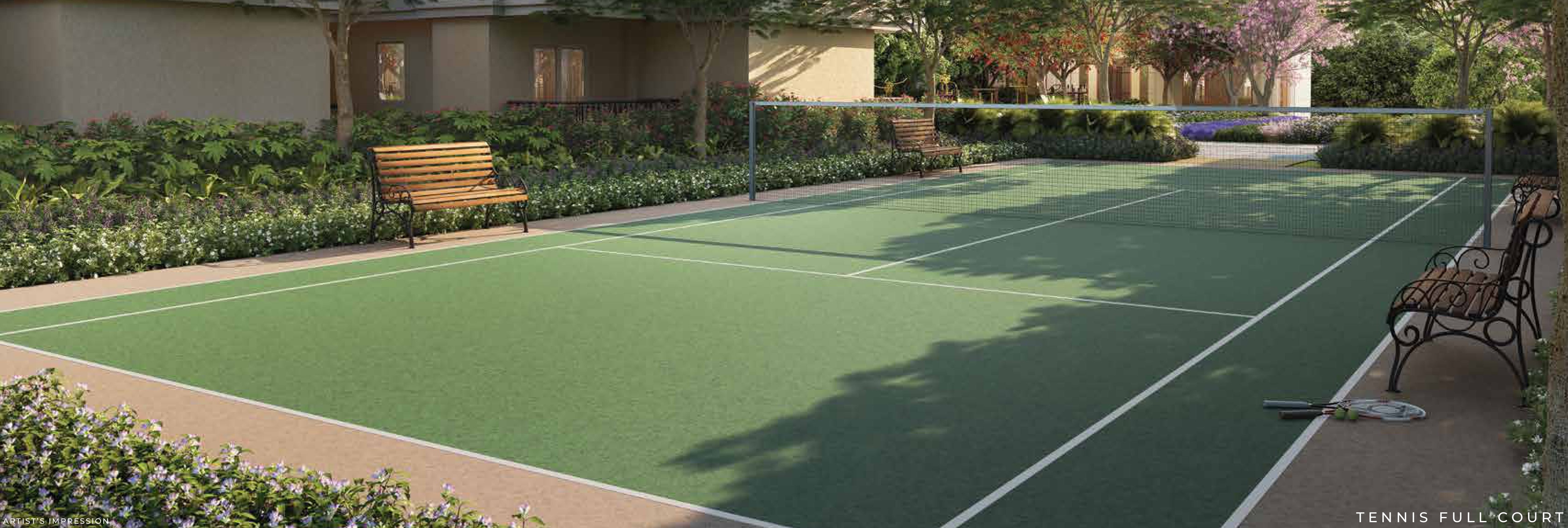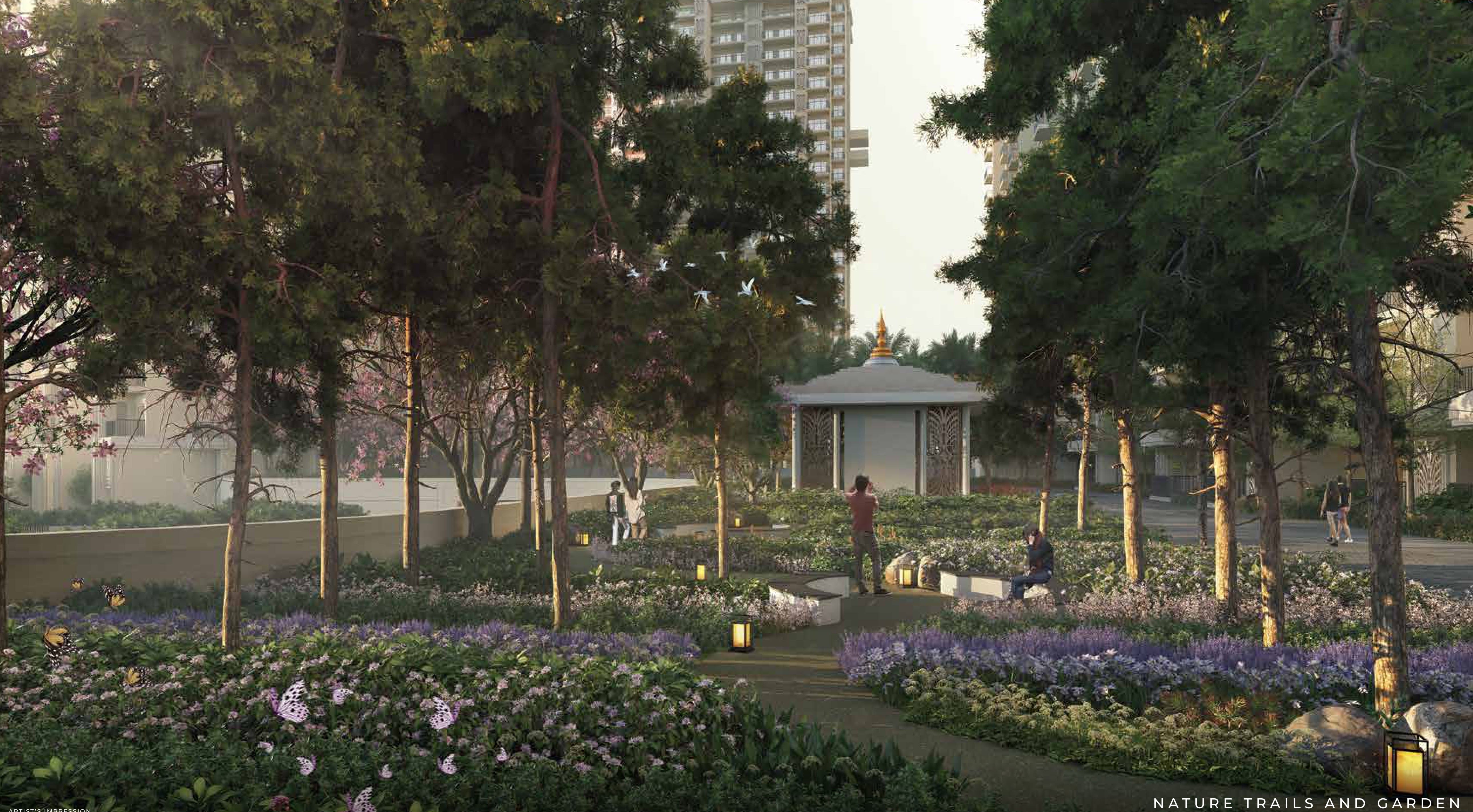 As per the approved building plan, an apt no of trees will be provided. The tress will be a mix of evergreen and flowering trees. There will be themed tree plantations and the complex will have a lush green outlook.