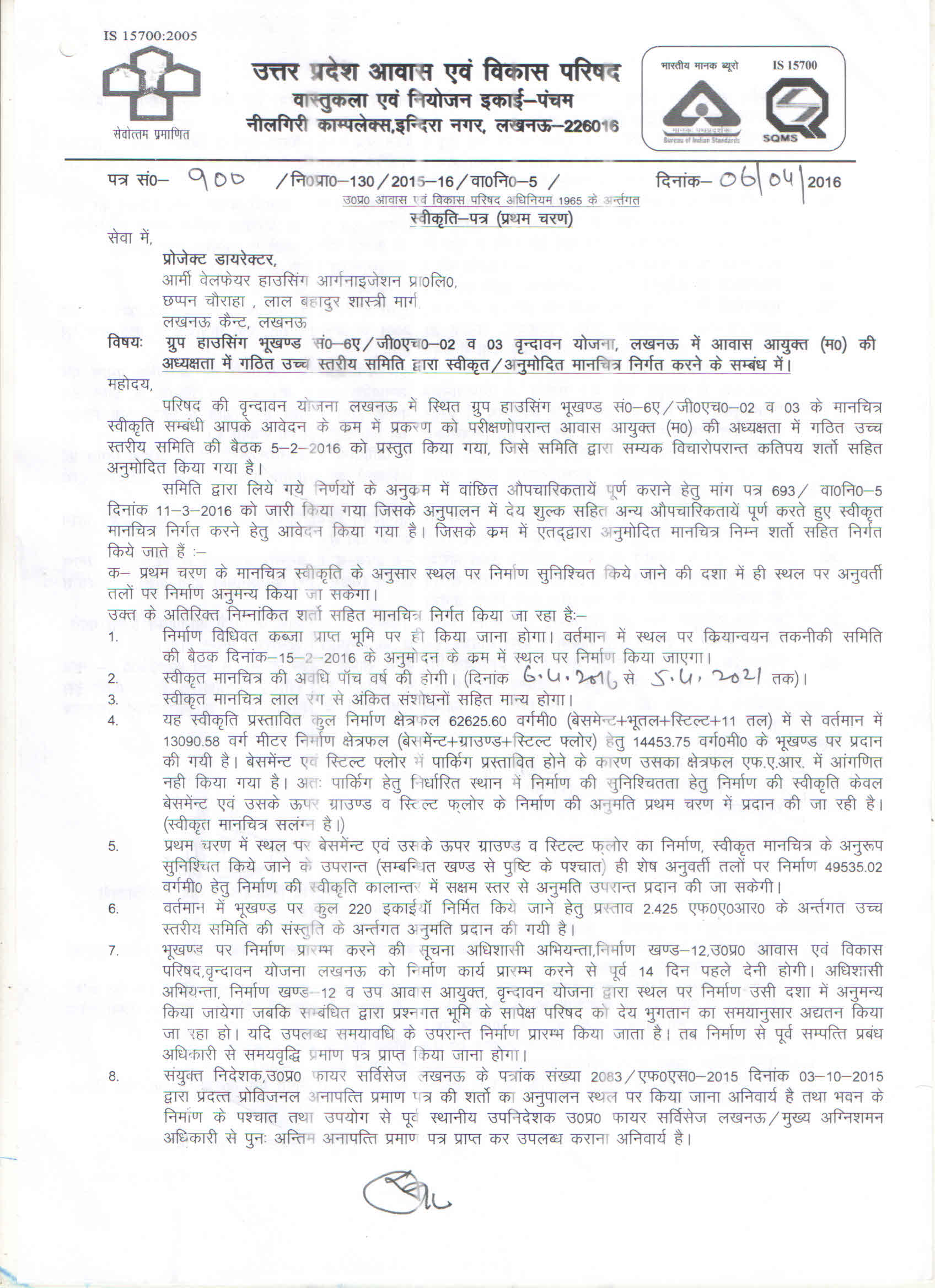 PROVISIONED OF FIRE STAIR CASE AS PER SANCTIONED PLAN BY UP AWAS VIKAS LUCKNOW