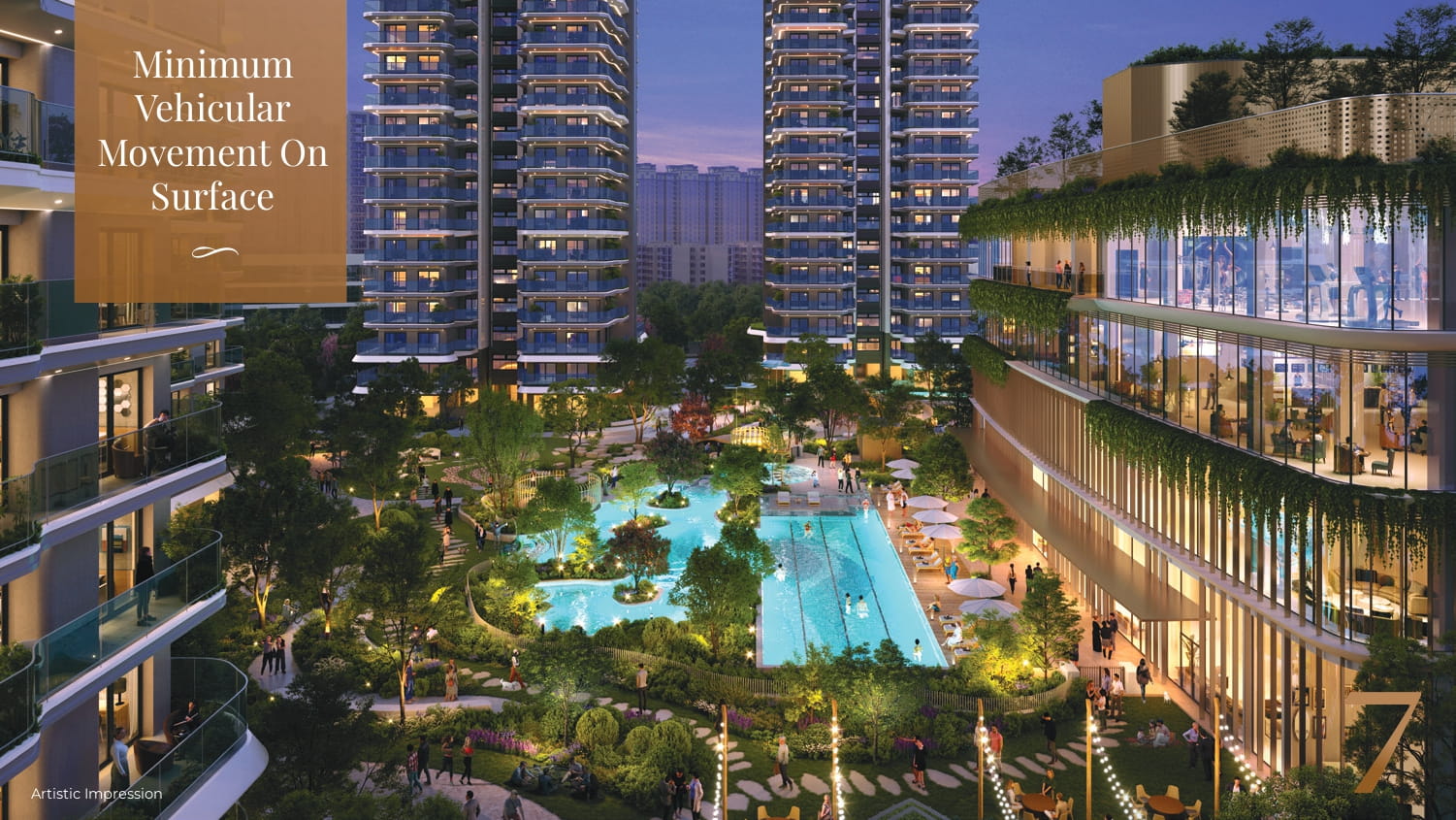 CONTINUOUS LINKED PATHWAYIN THE COMPLEX PROVIDED TO ENABLE PEOPLE TO HAVE A WALKABLE NEIGHBOURHOOD. THE WIDTH OF FOOTPATH VARIES FROM 1.5M TO 3 M.