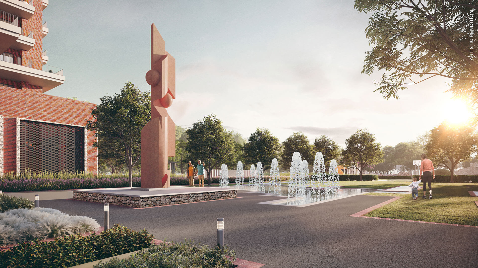 A Networks of Footpaths connects with various areas of the Landscape, including the Towers and Gardens.