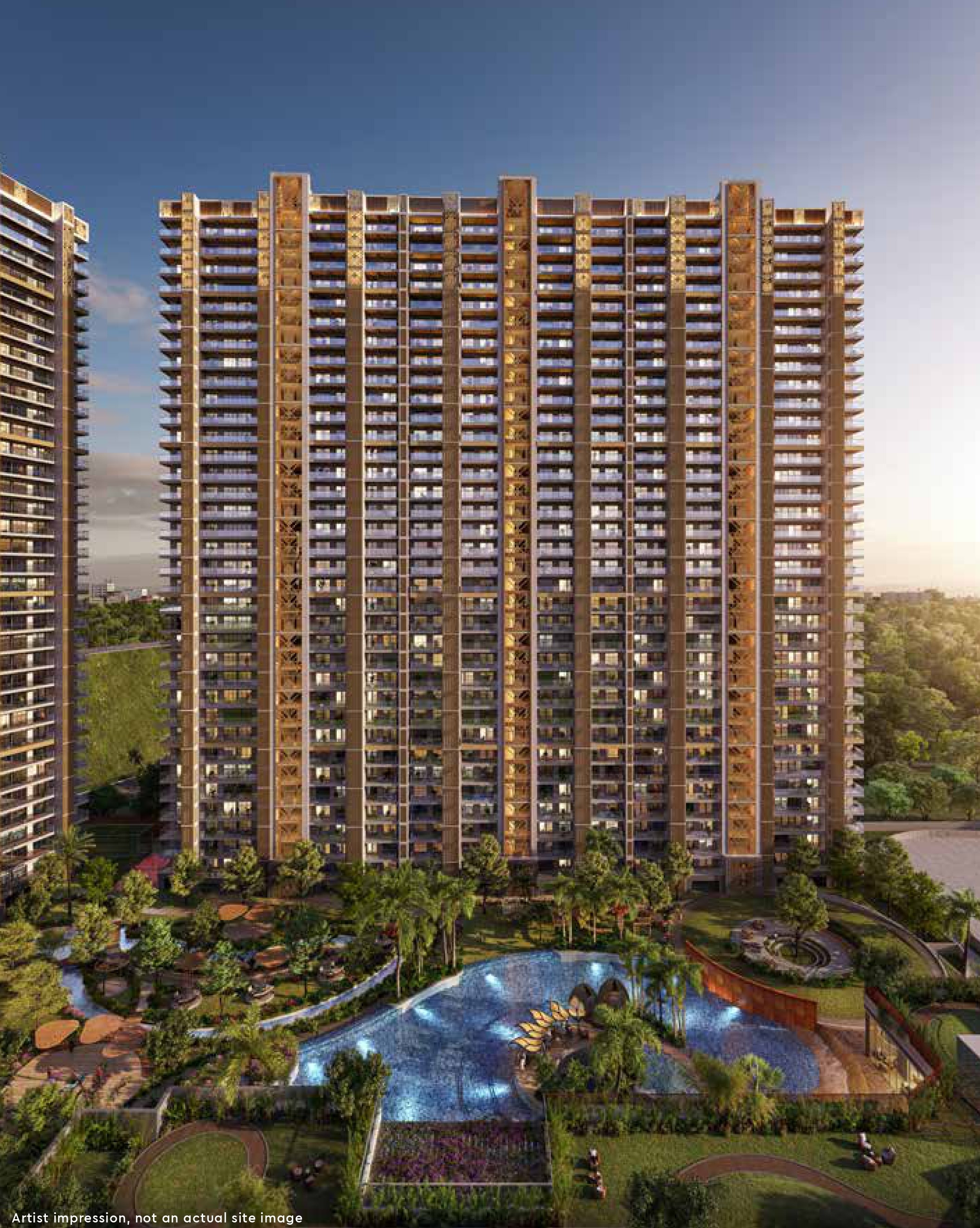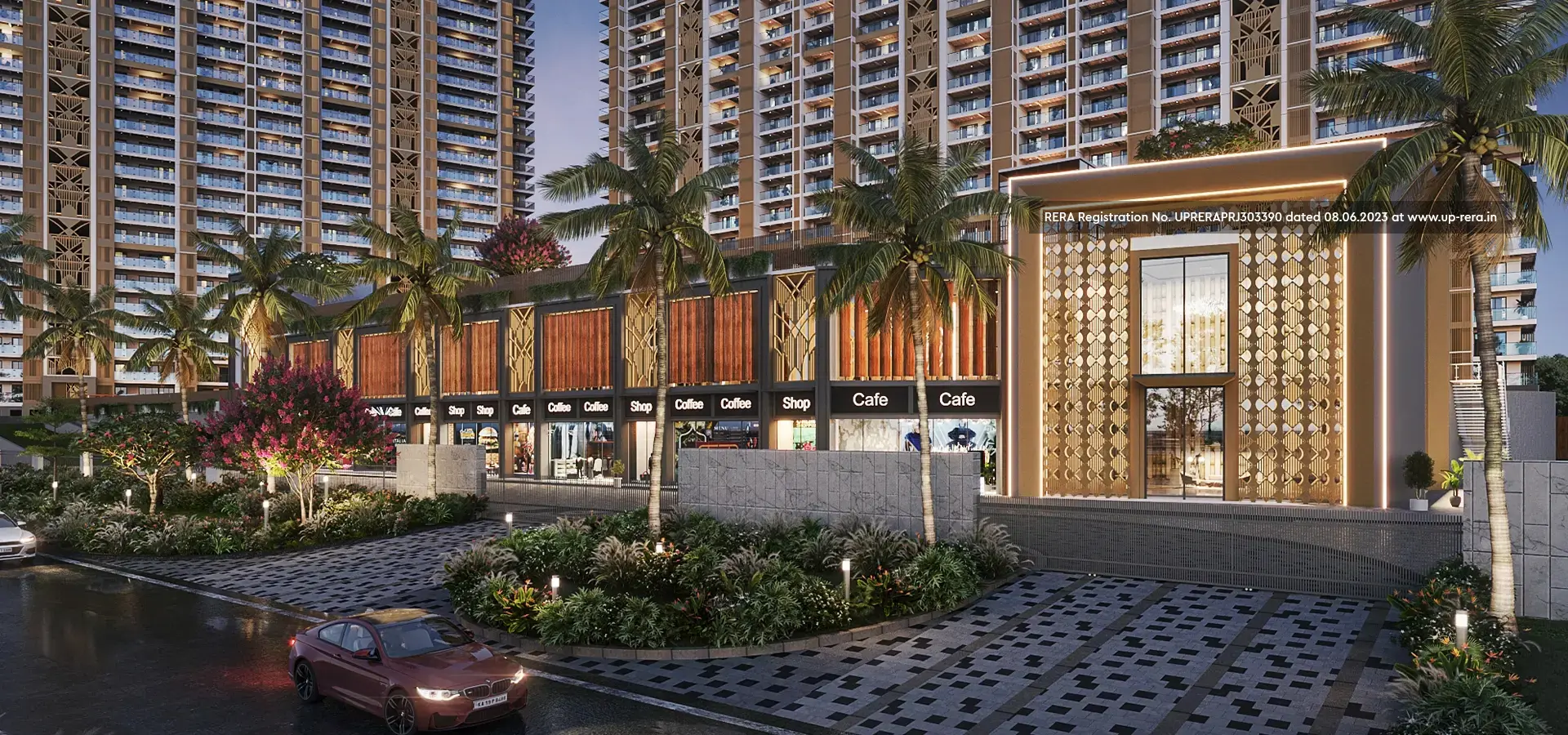 Peripheral loop of road connect to each tower with a dedicated Drop off Plaza for Cars to access the respective towers as per Approved Building Plan