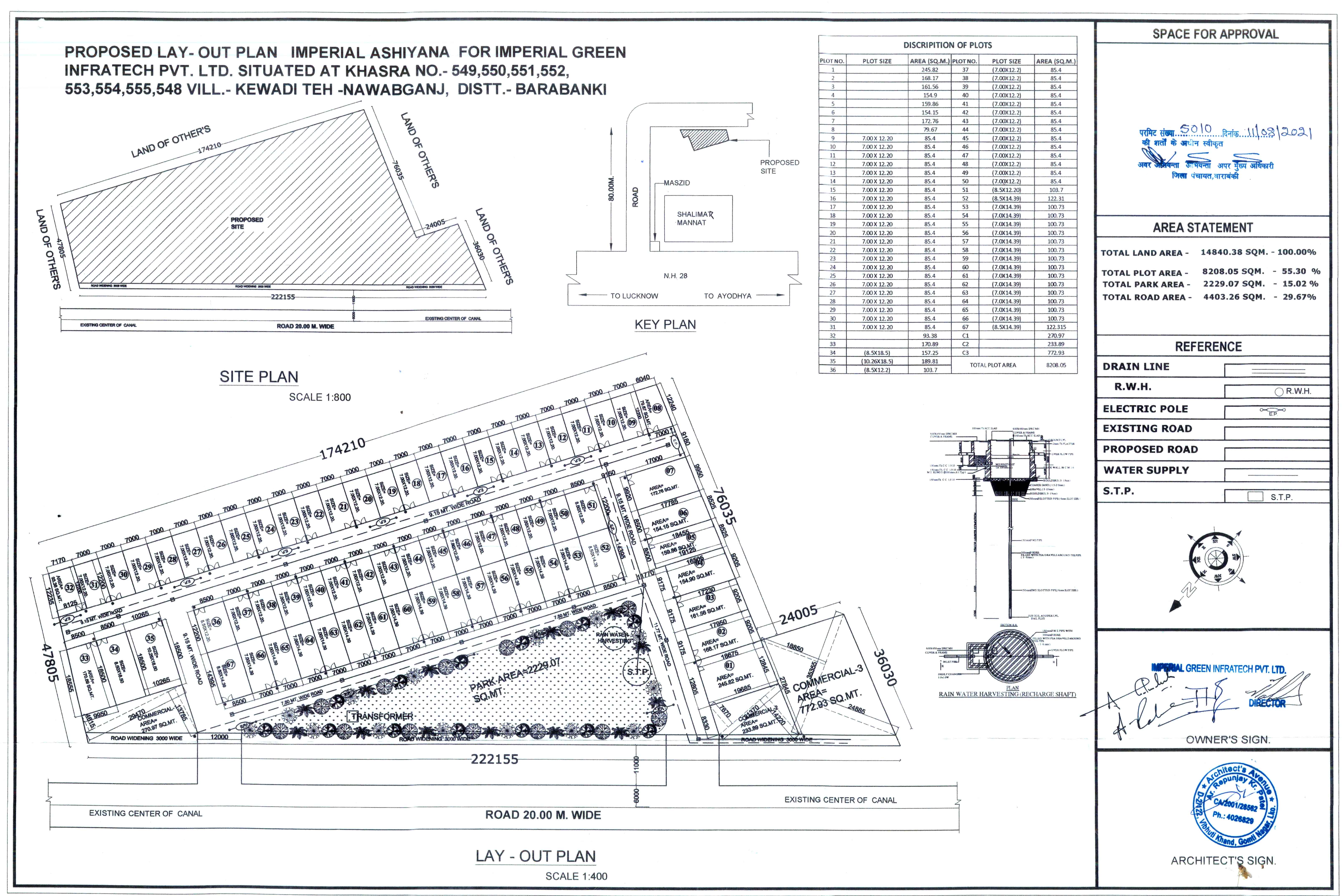 As per the norms, the road will be developed. The 12-meter road will be the main road and the internal road will be 10-meter and 9-meter. Semi dense Bituminous concrete (SDBC) road shall be constructed with the base of GSB and WMM