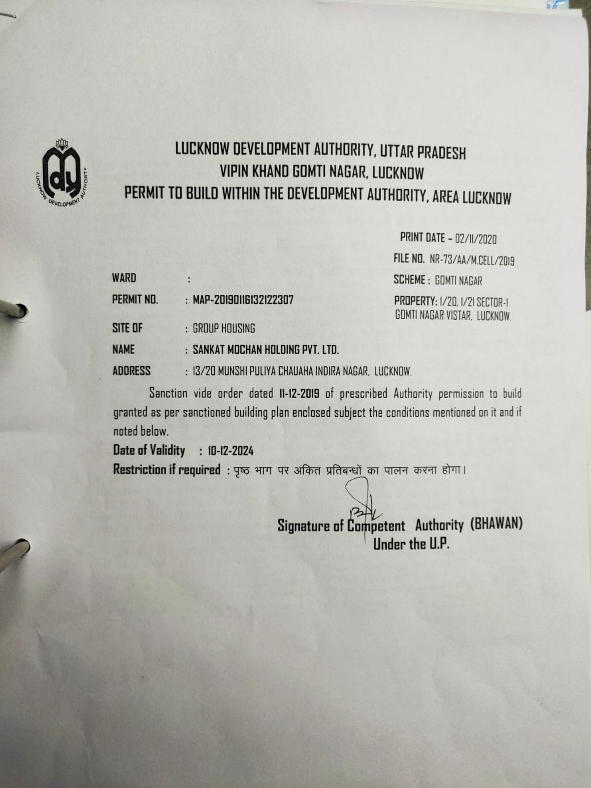SHALL BE AS PER REQUIREMENT OF LOCAL AUTHORITY
