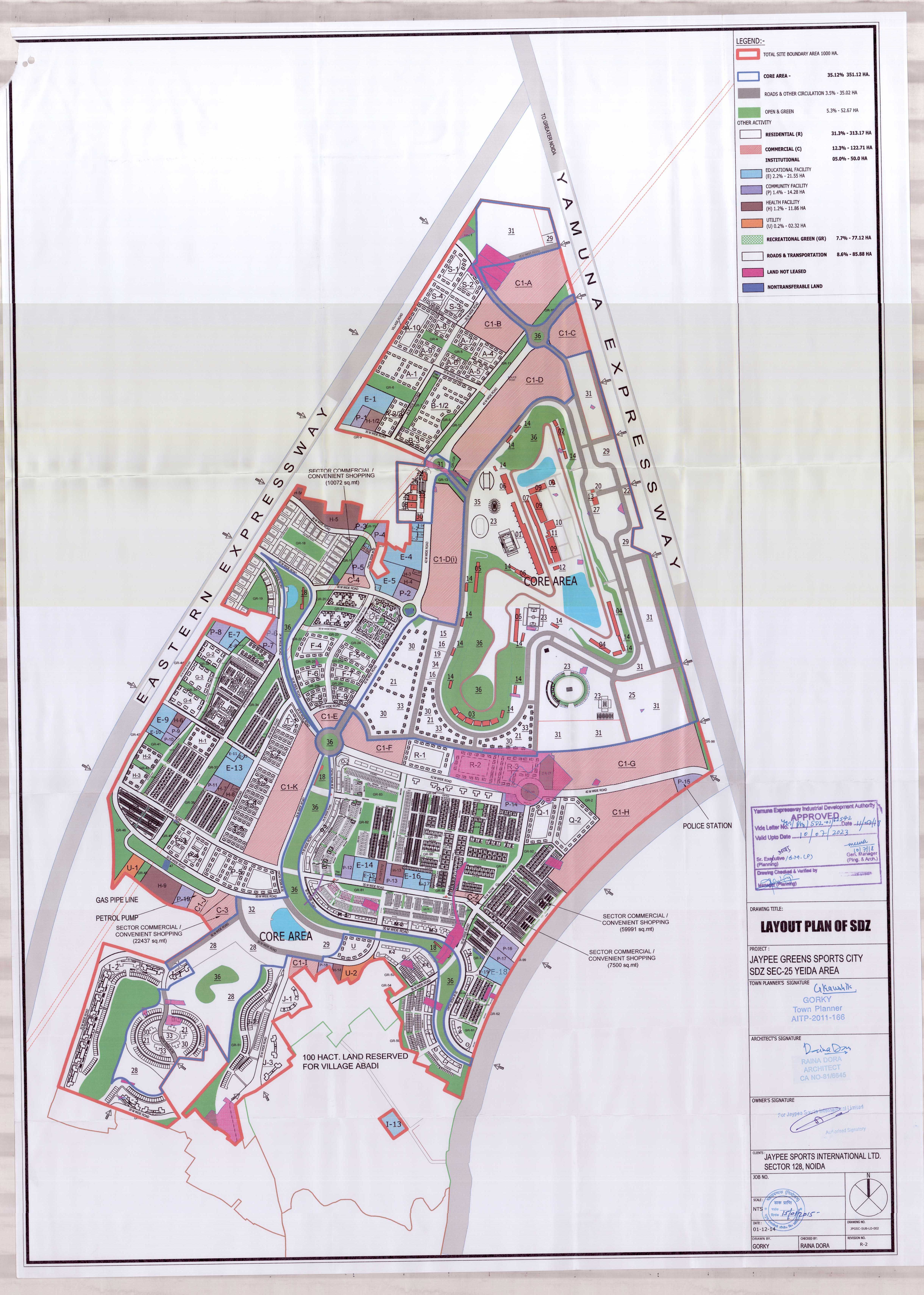 At township level, Higher Secondary School (Sardar Patel Vidyalaya), Temples, Cafeteria, Police Outpost, Dispensery facilities etc. have already been provided. World class Formula -1 racing Track is operational within the Township and round the year races , corporate events etc are being hosted and held in Buddh International Circuit. International standard Cricket Stadium with Outfield, spectator stands already made ready and corporate league and other cricket matches are being held at the Cricket Ground.