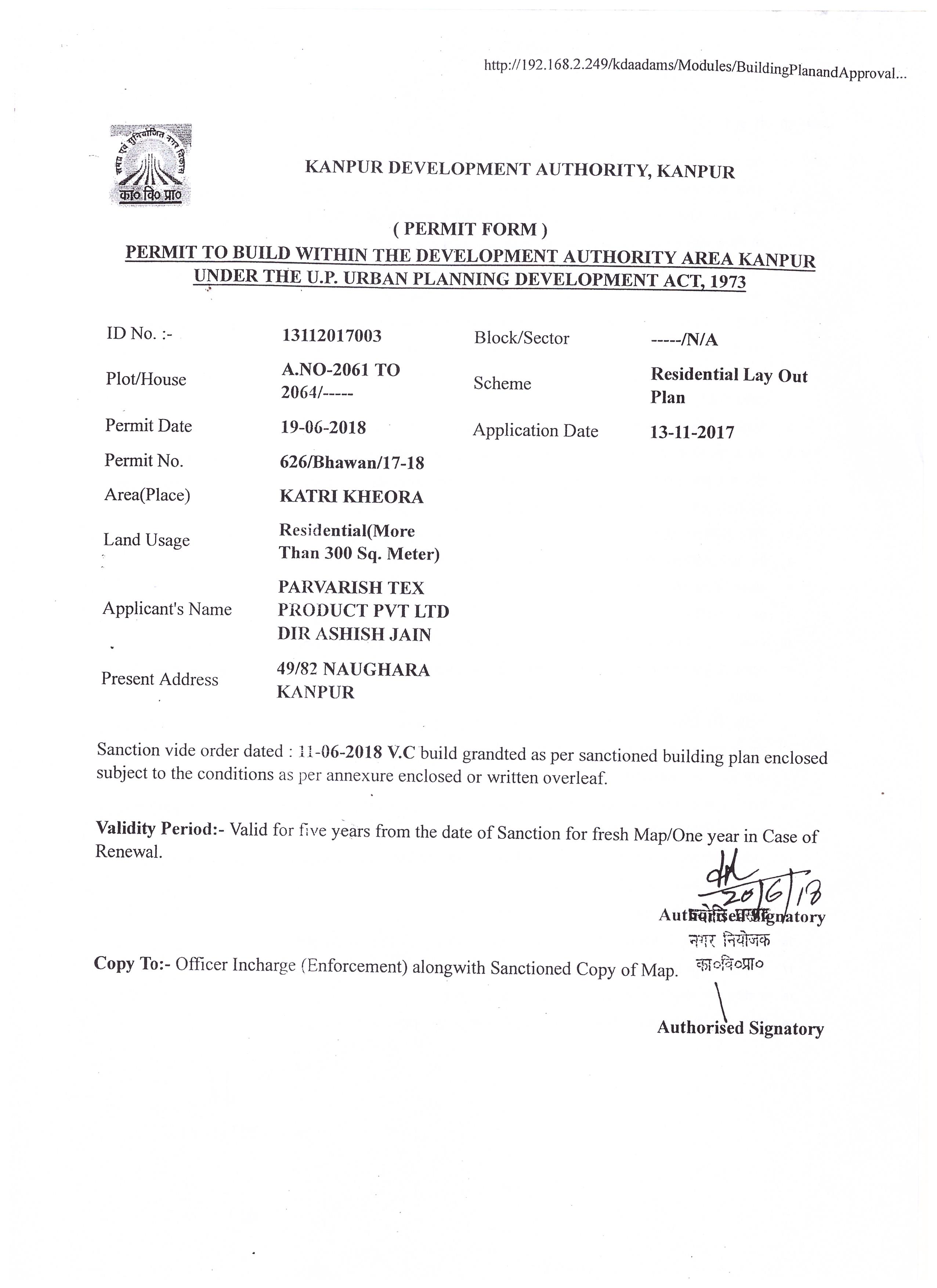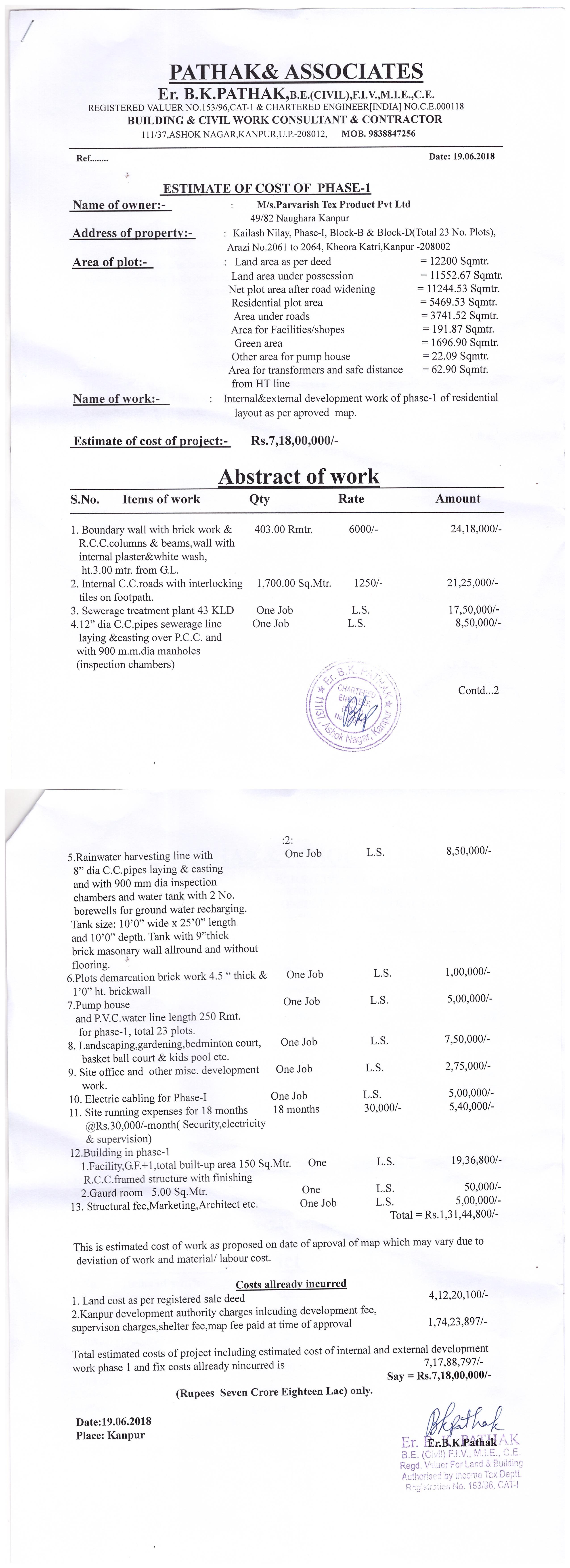 one facility building on plot area 191.87 sqmtr as per approved layout