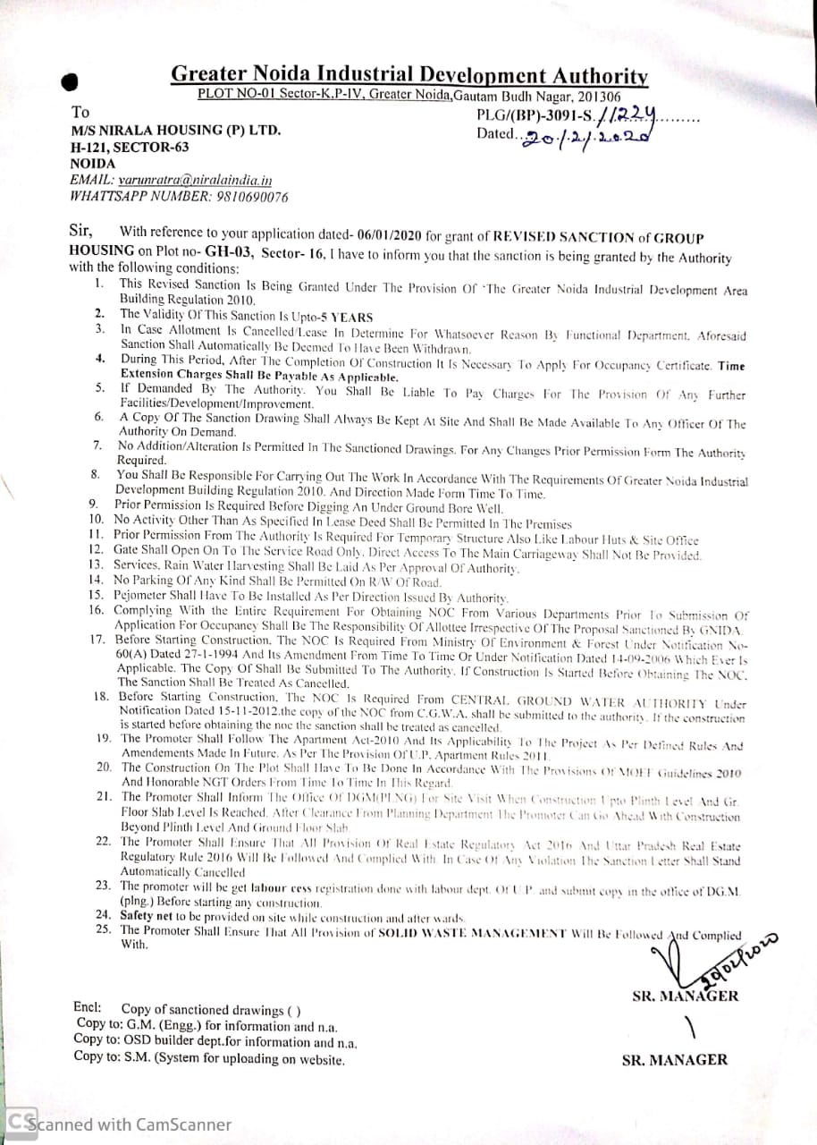 Plot area of the Nirala Aspire PH-IV is 10052.59 sqmtr and is part of total plot area 78021.19 sqmtr at GH-03, Sector-16, Greater Noida West, UP allotted by Greater Noida Industrial Development Authority. The demarcation of total plot and Nirala Aspire PH-IV plot is attached with layout plan