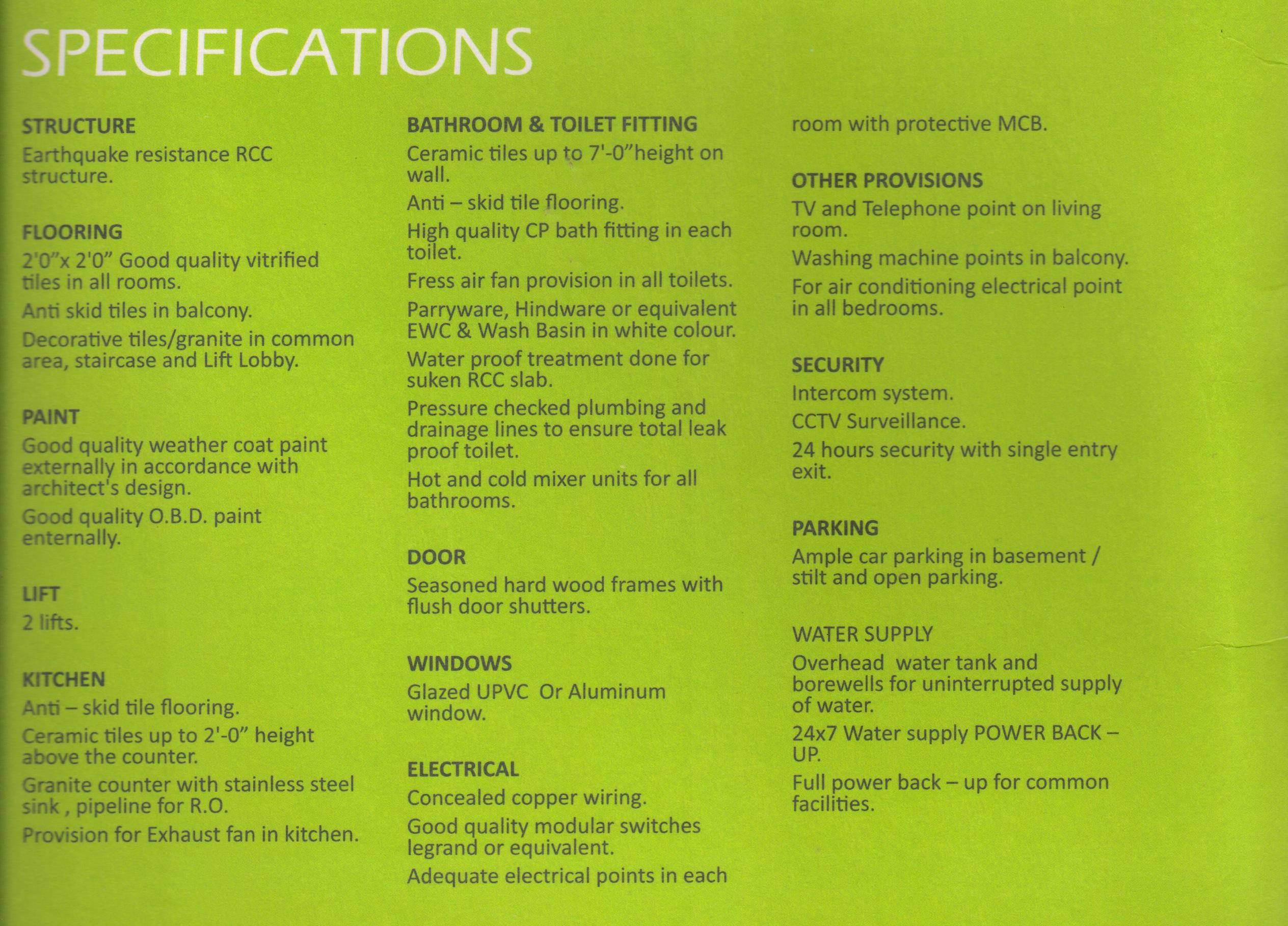 2 Nos of boring will provide the water supply to the plot & individual. Terrace tanks shall be provided on building terrace for distribution through gravity.
