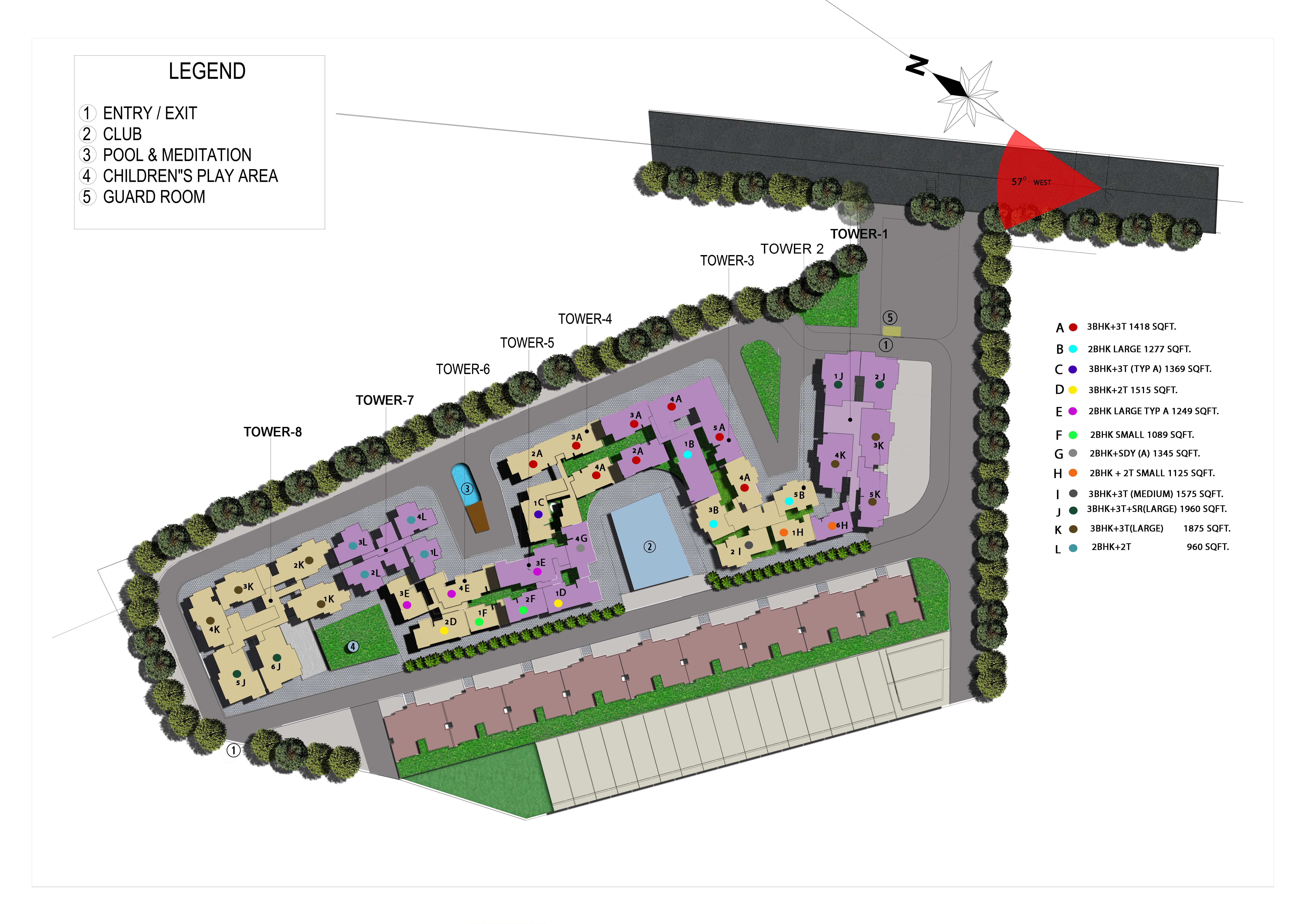 Highly energy efficient LED lighting system proposed in external development, street lighting, all common areas in tower and in parking location will be provided.
